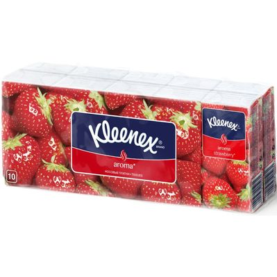 Салфетки косметические Kleenex Aroma с ароматом клубники двухслойные 10 пачек по 10 шт. (5029053028323)