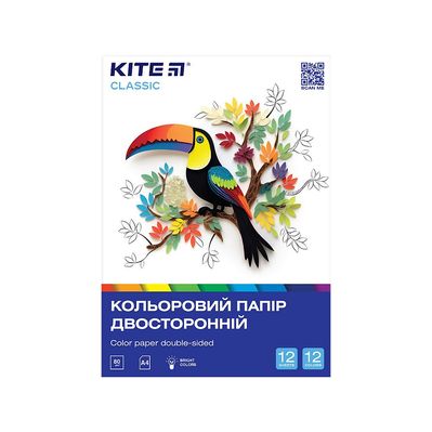 Кольоровий папір Kite А4 двосторонній Classic, 12арк/12 кол (K-287)