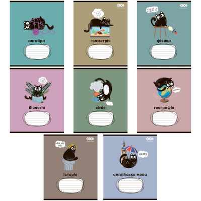 Зошит ZiBi набір учнівських CRAZY CAT 48 аркушів клітинка 10 штук, 8 предметів (ZB.1703-99)